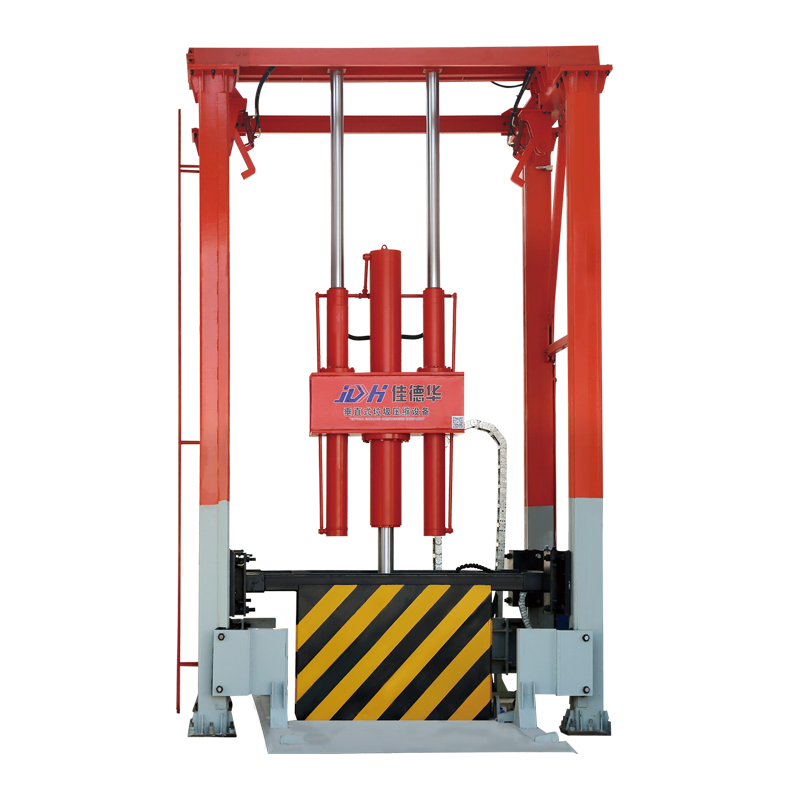 压缩装置:是垃圾压缩站的主体,由钢框架、导向装置、压台及液压油缸组成,通过压缩油缸的上下运行而对垃圾进行压缩、提升收集箱总成等工作,它的压缩力为120吨;该装置还具有超工作范围报警功能,可大程度上对设备进行保护。挂箱装置安装在压台内,它是由挂箱油缸、转盘、连杆滑销等组成,安装在压台上通过油缸带动滑销进退来控制压台挂上或脱开箱体。压头与压缩油缸采用球铰连接,其支撑臂上装有导向滑块组,以四立柱为导轨上下移动;每个导向滑块均可单独调整定位,上下导向滑块有一定跨距,消除压头压缩垃圾时可能产生的偏转,挂箱机勾安装在压头内,其锁销可与垃圾箱上的挂耳连接,利用压头的升降实现垃圾箱的升降。